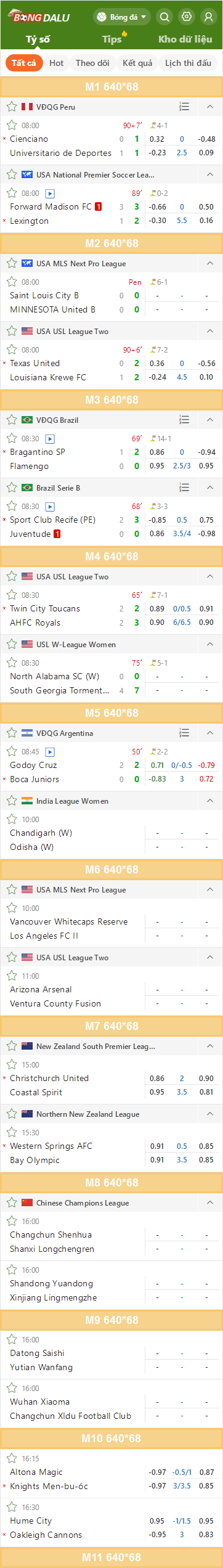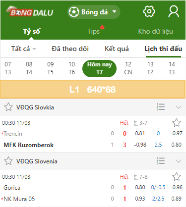 Các vị trí trên trang Tỷ số bóng đá